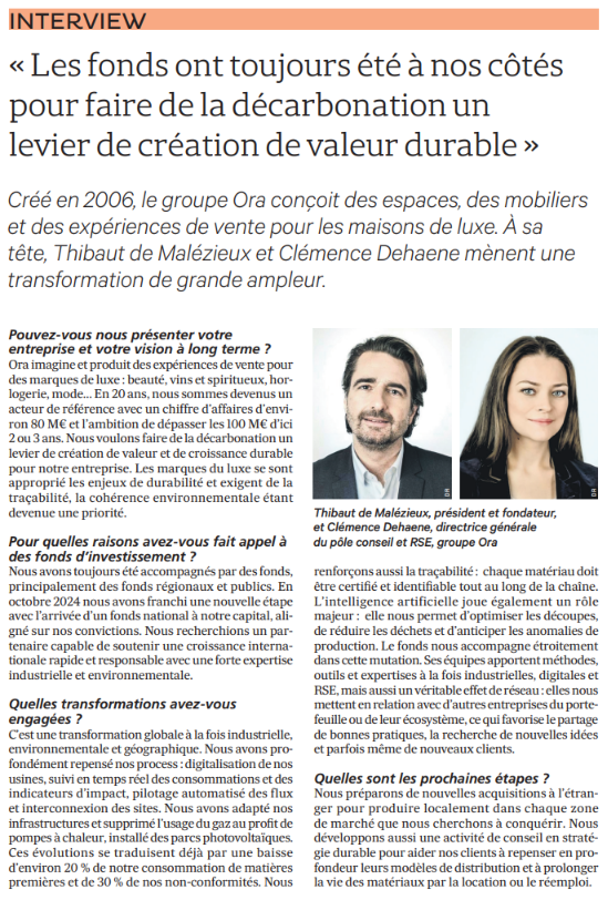 Thibaut de Malézieux, président et fondateur du Groupe Ora, spécialisé dans le retail et l’expérience en point de vente, témoigne de l’impact déterminant des investisseurs pour conduire des transformations durables et de grande ampleur. Au-delà du financement, ce sont surtout les méthodes, expertises et réseaux apportés par les fonds qui ont permis un véritable passage à l’échelle.